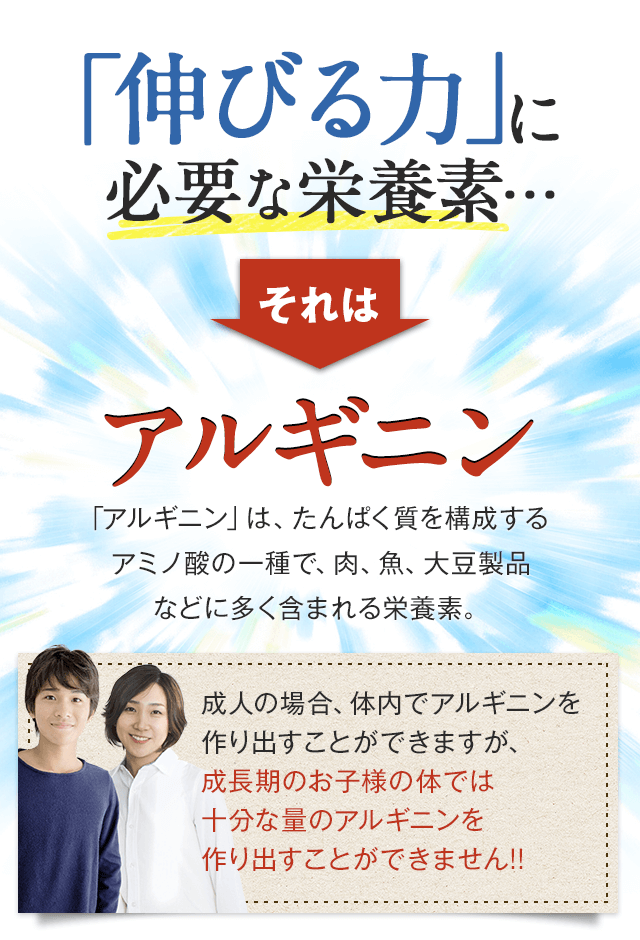 - 成長に欠かせないアルギニンを5,000mg(1日分)配合!