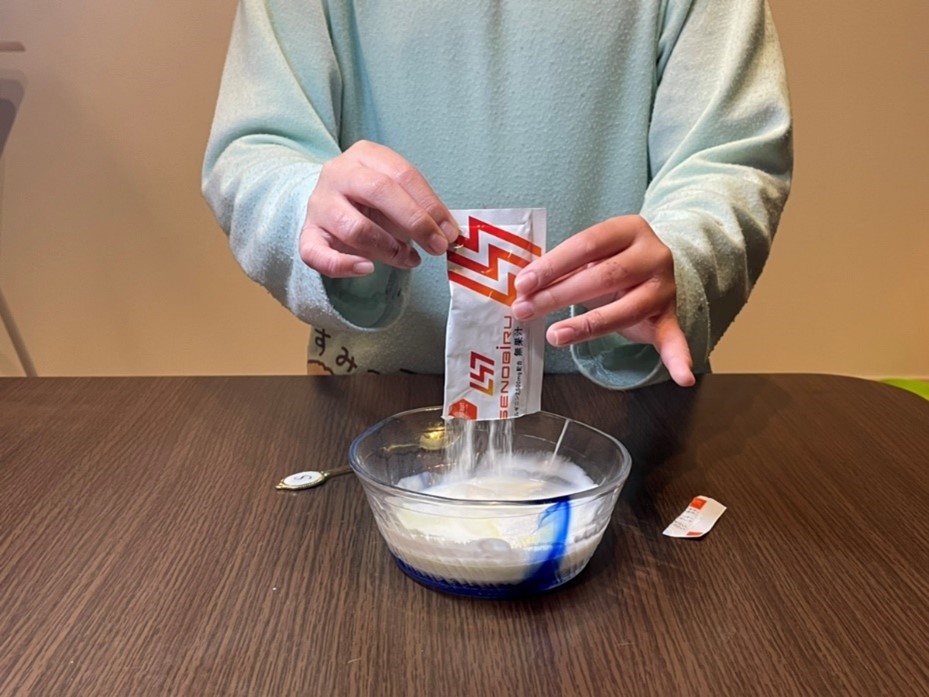 ① 今回はヨーグルト50~70gほど用意して、「DR.SENOBIRU」を混ぜました