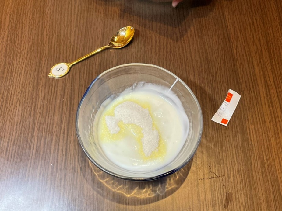 ③ いい感じで「DR.SENOBIRU」もヨーグルトと混ざっています
